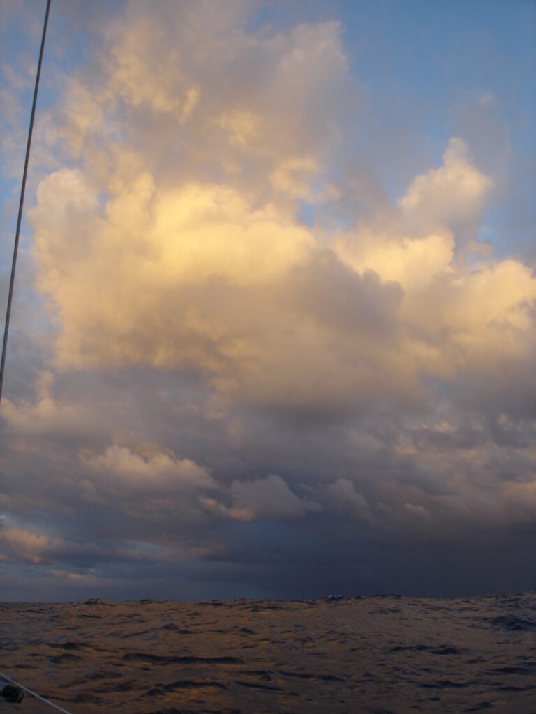 ’s Avonds horen we van de J&B, die 250 mijl voor ons varen, dat ze een hele zware nacht hebben gehad met veel squalls. Jan had zijn grootzeil helemaal gereefd en ging nog 8 knopen. We hopen maar dat dit ons bespaard blijft.